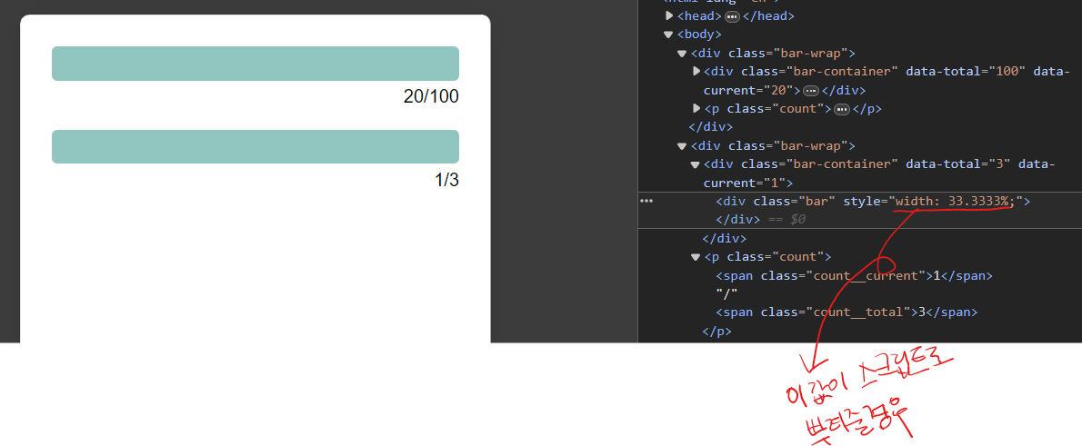 2. 전체값, 현재값 각각 인라인으로 각각 넣어서 막대그래프 여러개일때도 유동적으로 변경가능