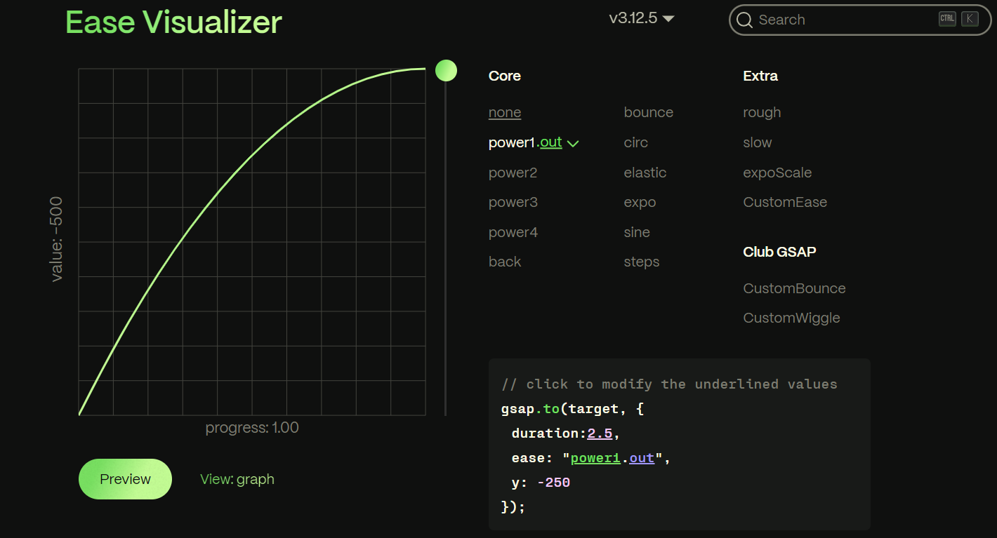 플러그인쓴거 보면 power1.out이런게 있는데 사이트에 들어가서 체크하면 다양한 이징 효과를 볼수있다